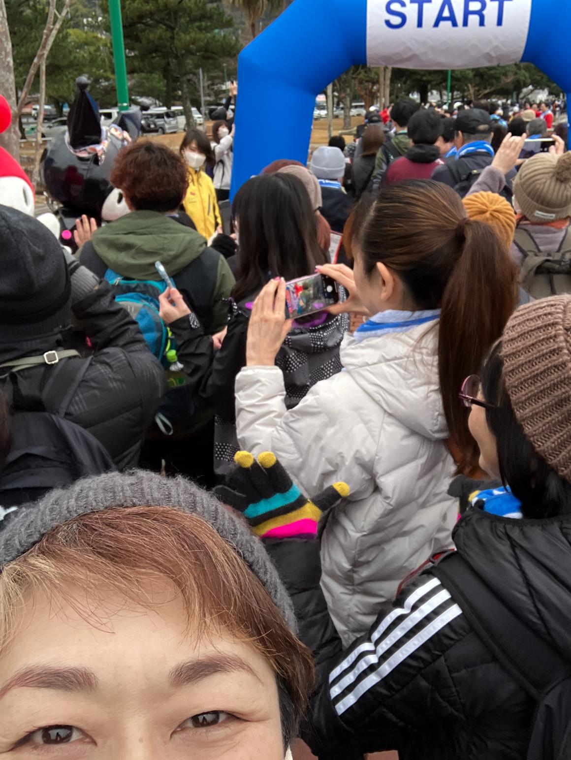 うみたまごからスタートするマラソンの選手と同じ時間に私たちもスタート。スタート時にかかったマルーン5の曲「Lucky Strike」で気分はアゲアゲ!