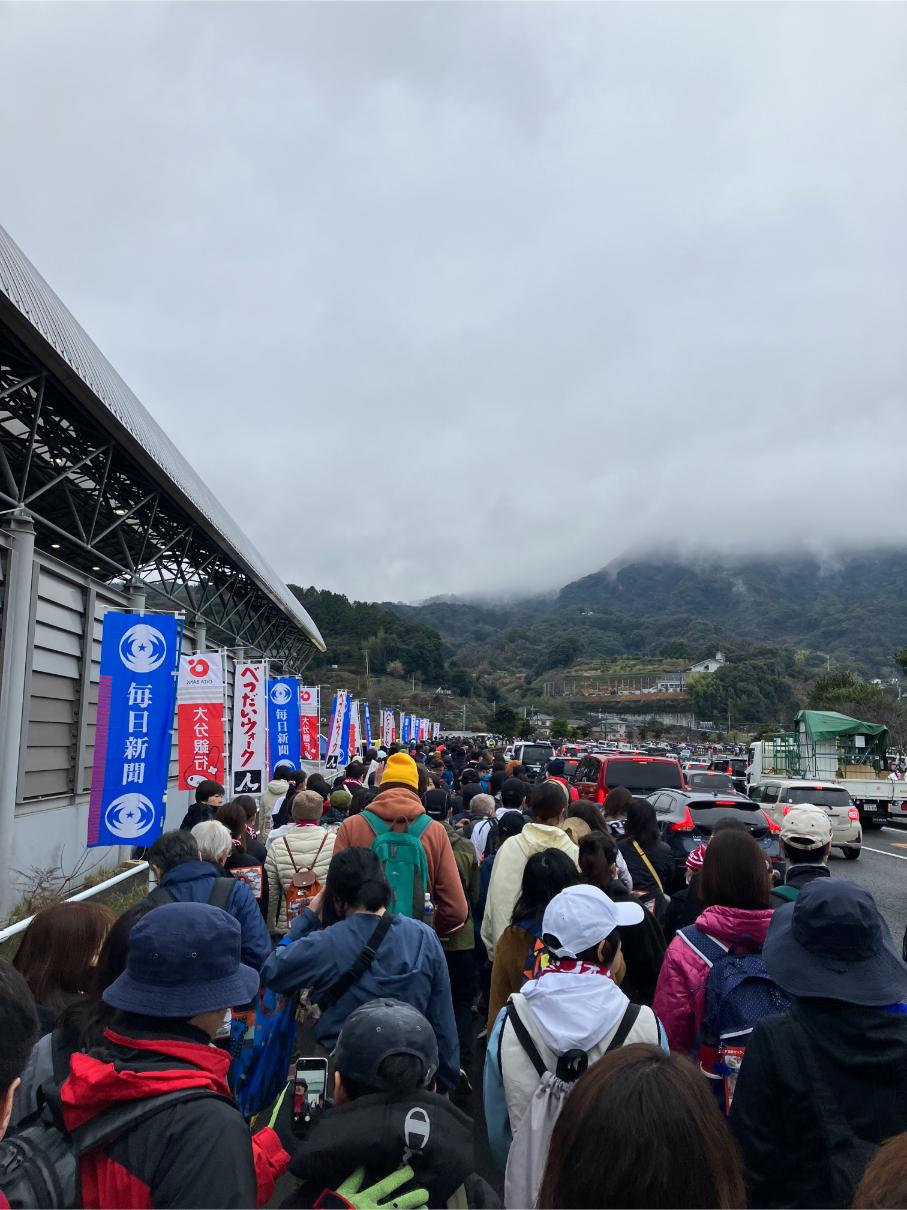 とりあえず行って、参加賞をもらって歩いて帰れば良いじゃん。家まで歩いたら十分べつだいウォークじゃん。って思いながら別府駅から発車する10時のシャトルバスに乗り込みました。