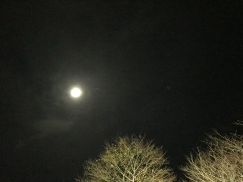 まるで満月みたいに撮れちゃったけど、半分より少し大きいくらいだったかな。