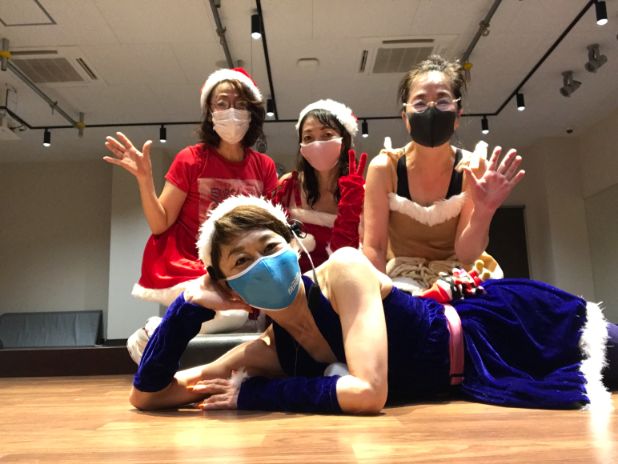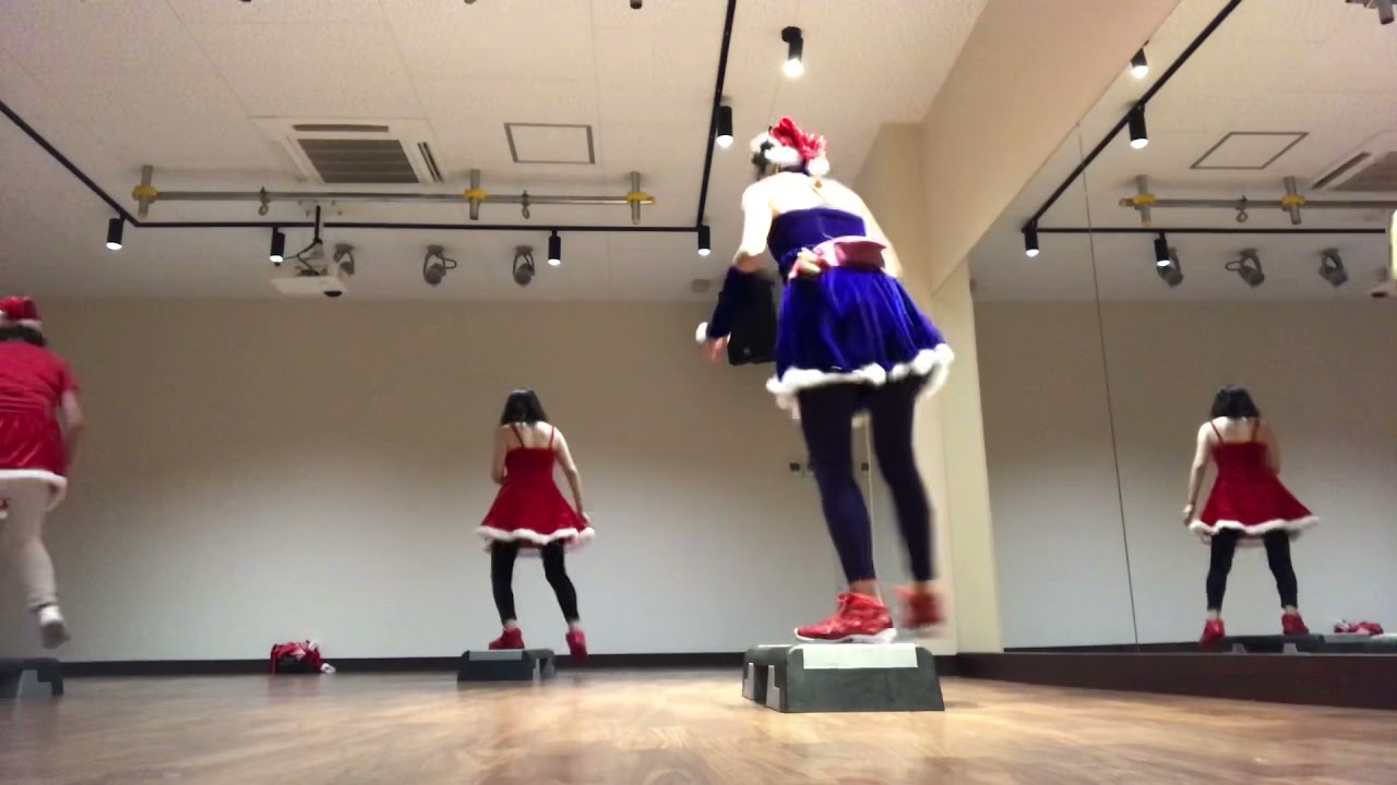 大分で活動中 エアロビクスインストラクターtomoのステップクラスのレッスン風景(クリスマスコスプレ)